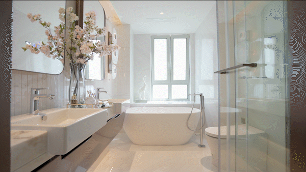 建面188㎡K户型从客卫洗台布景墙利用的是